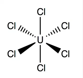 - ↑ ZACHARIASEN, W. H. Crystal chemical studies of the 5f-series of elements. V. The crystal structure of uranium hexachloride. Acta Crystallographica. 1948-12-02, roč. 1, čís. 6, s. 285–287. Dostupné online [cit. 2024-07-23]. ISSN 0365-110X. doi:10.1107/S0365110X48000788. (anglicky)