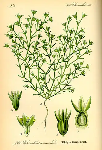 - ↑ THIERET, John W.; RABELER, Richard K. Flora of North America: Scleranthus annuus [online]. Missouri Botanical Garden, St. Louis, MO & Harvard University Herbaria, Cambridge, MA, USA [cit. 2016-05-31]. Dostupné online. (anglicky)