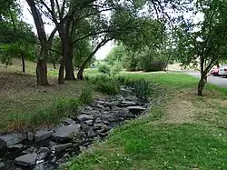 Koryto potoka, v 70. letech napřímené a opatřené kamenným opevněním, bylo stabilizováno těžkou kamennou rovnaninou, která vytváří přírodě blízké koryto s tůňkami a jízky. Oproti klasickému opevnění je v takovém korytě mnohem více vody, která se navíc na jízcích okysličuje, zatímco tůně slouží jako domov mnoha vodním organismům. Mimo příjemnější vzhled lokality se tak zvýšilo i množství vody, které je potok s nádržemi schopný zadržet v případě povodní (z původních 9 630 m³ na 13 400 m³).[1]