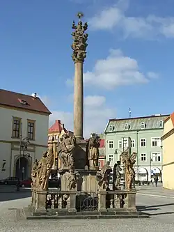 ![]() Městská věž s kostelem Nanebevzetí Panny Marie a sousoším Nejsvětější Trojice | |