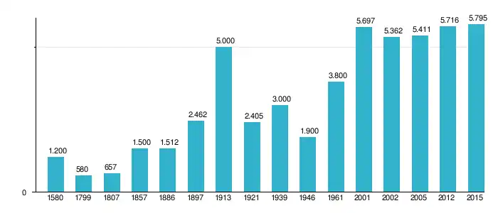 V roce 2016 zde žilo 5 834 obyvatel, rozloha města je 18,61 km², což je 347,5 obyvatel/km².