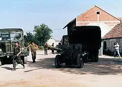 V srpnu 1991 začala bitva o Vukovar.[140][141] Východní Slavonie byla během tohoto období těžce zasažena, počínaje masakrem v Dalji[142] a fronty se rozvíjely kolem Osijeku a Vinkovci souběžně s obklíčením Vukovaru.[143][144][145][146] V září srbské jednotky město Vukovar zcela obklíčily. Chorvatské jednotky, včetně 204. vukovarské brigády, se zabydlely ve městě a držely se proti elitním obrněným a mechanizovaným brigádám JNA, stejně jako srbským polovojenským jednotkám.[147][148] Vukovar byl téměř úplně zničen; Zničeno bylo 15 000 domů.[149] Někteří etničtí chorvatští civilisté našli úkryt uvnitř města. Ostatní civilisté z oblasti hromadně prchali. Odhady počtu obětí Vukovaru v důsledku obléhání se pohybují od 1 798 do 5 000.[83] Dalších 22 000 bylo z Vukovaru vyhoštěno ihned poté, co bylo město dobyto.[149][150]