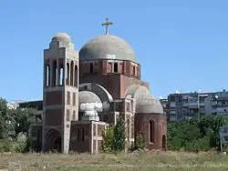 Jednolodní chrám byl budován v duchu tradiční srbské architektury inspirované byzantským vlivem. Betonový skelet objektu s centrální kupolí a zvonicí byl vyzděn cihlovými zdmi. Kostel vznikl na půdorysu kříže.