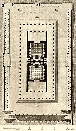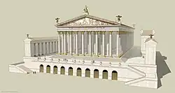 Zatímco kratší strany chrámu na východě a západě měly deset sloupů, delší strany na jihu a severu disponovaly s osmnácti sloupy. Každý z nich byl vytesán v korintském řádu a byl 1,8 metrů široký. Dohromady pak představovaly masu bílého mramoru, což na pozorovatele působilo velkolepým dojmem.