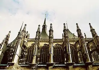 Pohled do vnějšího opěrného systému kostela sv. Barbory