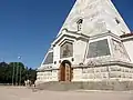 Avdějev zvolil tvar pyramidy, který má symbolizovat věčnost. Na její vrcholek umístil 24tunový kříž, plášť nechal obložit 56 dioritovými deskami. Na černých mramorových deskách na fasádě jsou nápisy se jmény oddílů, které se účastnily obrany Sevastopolu v letech 1854–1855, jsou zde také uvedeny počty padlých vojáků z každého oddílu.