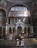 Během 2. světové války byl chrám silně poničen – vrchní část se zhroutila a kříž spadl na zem. Po roce 1968 byl objekt zrestaurován, i když původní zdobné litinové dveře se již zpět nevrátily. Roku 1994 byl svatostánek předán opět do rukou pravoslavné církve a proběhla ještě obnova některých detailů výzdoby, např. mozaik. Kamenný kříž musel být ještě v roce 2012 vyměněn (v pořadí tak jde již o čtvrtý kříž), neboť vážně hrozilo jeho zřícení.[1][2]