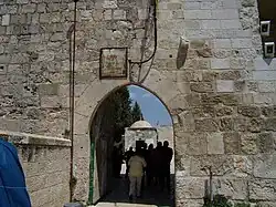 Arabsky Báb al-matára. Malý průchod vedoucí přímo k západnímu schodišti na esplanádu Chrámové hory. Pojmenovaná podle umýváren, které se vedle ní nacházejí.