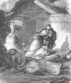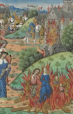 - ↑ Chlothar I, King of the Franks, burning to death his rebel son Chram and his family, 561