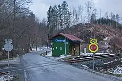 Přímo u zastávky se v km 8,954 nachází přejezd P4195, který je zabezpečen výstražnými kříži. Na tomto přejezdu trať kříží silnice 3. třídy, která vede do Chrastic a Hynčic pod Sušinou.[2]