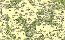 | Jméno městečka | stav | obyvatel roku 1651[8] | počet budov roku 1830 | obyvatelstvo přítomné roku 1830 | obyvatelstvo domácí roku 1830 |