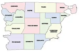 Seznam depatementů provincie Chubut a jejich hlavních měst: