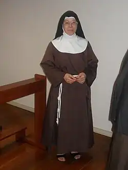 Řeholní oděv klarisek je hábit ve tvaru kříže, hnědé nebo černé barvy, přepásaný cingulem a hnědý nebo černý závoj. U laických sester má pak závoj bílou barvu.