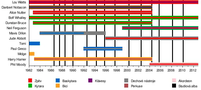 - Dunstan Bruce – zpěv, basa, saxofon (1982–2004)