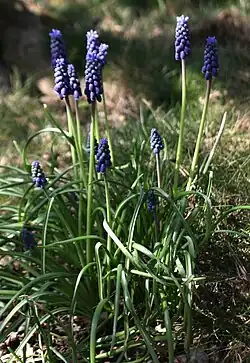 - Muscari botryoides – vysoký 10 až 20 cm, kvete v dubnu a květnu, v různých varietách různých odstínů, a to od bílé až po sytě modrou.
