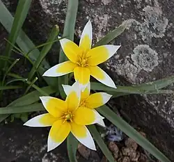 - tulipány (Tulipa kaufmanniana) kvetou počátkem dubna, jsou nižší a mají často dvoubarevné květy