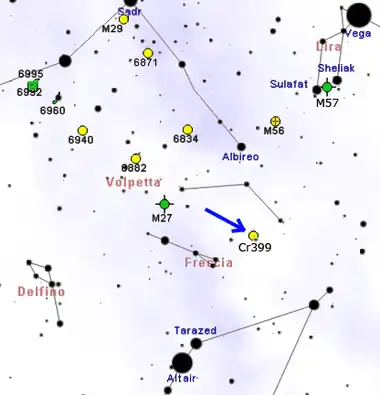 - ↑ a b c d FROMMERT, Hartmut. Brocchi's Cluster, Collinder 399 [online]. SEDS.org [cit. 2021-02-04]. Dostupné v archivu pořízeném dne 2020-03-29. (anglicky)