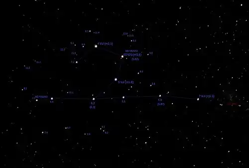 | 7 Vul | 6,327 | B5Vn | 1160 +240 -170 |