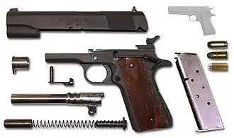 Rozebraná pistole M 1911 A1 z moderní výroby