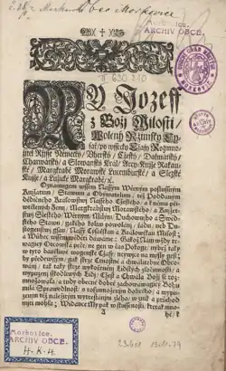- Geho Milosti Ržimského Cýsaře Vherského a Cžeského Krále ec. JOZEFFA Prwnjho. Arcy-Knjžete Rakauského ec. Pána nasseho Negmilostiwěgssýho. Nowé Práwo Vtrpné a Hrdelnj pro Králowstwj Cžeské Margabstwj Morawské a Knjžetcstwj Slezské Archivováno 29. 12. 2021 na Wayback Machine.. Wytisstěno w Praze: V Dědičůw Jana Karla Geřábka skrze Jana Adama Cecynkara Faktora, 1708. [4], 84, [2]. elektronická kniha v katalogu Vědecké knihovny v Olomouci, digitalizována v rámci služby eBooks on Demand