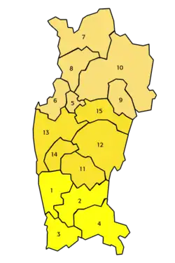 Region se dále dělí na 3 provincie a 15 komun.