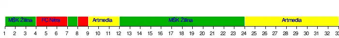 | FC Artmedia Petržalka | 2:3 | 1:0 | 3:0 | XXX | 6:3 | 3:1 | 2:1 | 5:0 | 0:0 | 3:1 | 3:2 | |
