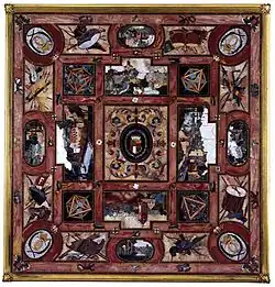 V 16. století se technika commesso in pietre dure objevila v Římě, ale dokonalosti dosáhla až ve Florencii zvláště poté, co v Uffiziích vznikla rozsáhlá škola nazvaná L’Opificio delle Pietre Dure (1586). V roce 1588 ji arcivévoda Ferdinand I. Medicejský reformoval do podoby manufakturní dílny. Následujícího roku dostal císař Rudolf II. kameny intarzovanou stolní desku jako jednu z prvních prací této dílny. Bezprostředně poté následovala císařova objednávka na další desku stolu, jejíž výroba však trvala déle než 6 let.