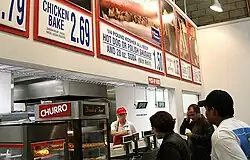 Většina obchodů Costco obsahuje také stánek s občerstvením, který nabízí už od roku 1985 stogramový stoprocentní hovězí párek v rohlíku nebo klobásu a více než půllitrový nápoj s možností doplnění za jeden dolar a padesát centů. V Austrálii je párek v rohlíku z vepřového masa a stojí dva dolary padesát centů s velkou sodou. V Mexiku se prodává také vepřový párek v rohlíku s nápojem s možností doplnění za 25 mexických pes. Ve Spojeném království je hot dog hovězí a s „bezedným“ nápojem stojí jednu libru a padesát pencí. V roce 2008 prodala společnost ve svých stáncích s občerstvením více než 82 milionů stogramových hovězích hot dogů. Většina stánků nabízí také pizzu se sýrem, s pepřincem, s obojím, nebo vegetariánskou. Ledový jogurt (podobný zmrzlině) je podáván jako čokoládový, vanilkový nebo s oběma příchutěmi. Stánky dále nabízejí ovocné koktejly, moccacino, pečené kuře nebo nové pečené asadové maso (mexický protějšek barbecue), sendviče, krůtí wrap-sendviče, stočené churros (španělské koblihy protáhlého tvaru), kuřecí saláty, někde také gelato (tradiční italská zmrzlina) a hranolky. Kvůli nízké poptávce byly staženy preclíky, které byly nahrazeny právě churros. Nutriční hodnoty jídel prodávaných na stáncích s občerstvením jsou dostupná na oficiálním webu Costca. V dubnu 2010 některé obchody v USA a Kanadě přestaly nabízet Coca-Colu a nahradili ji Pepsi colou.