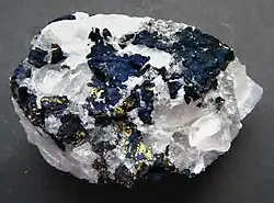 Obrázky, zvuky či videa k tématu covellin na Wikimedia Commons - Systematická mineralogie - 7.4. Sulfidy na mineralogie.sci.muni.cz