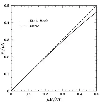 Jestliže mají částice libovolný spin, tak je vzorec složitější. Ve slabých magnetických polích nebo za vysokých teplot odpovídá spin Curieovu zákonu:[3]