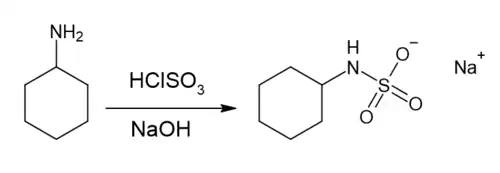 Vyrábí se synteticky reakcí cyklohexylaminu s kyselinou chlorsulfonovou a následnou neutralizací vzniklé kyseliny hydroxidem sodným nebo vápenatým:
