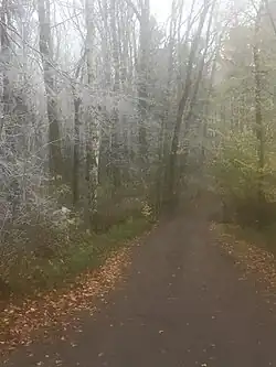 - směrem od Vrapic ke hřbitovu po lesní asfaltové cestě v horším stavu