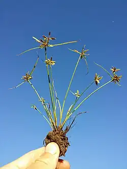 Šáchor žlutavý (Cyperus flavescens) s dozrávajícími plody | |