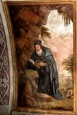 | Atributy | plnovous, oděv poustevníka, kříž; |
