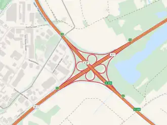 ![]() Pohled na dálniční křižovatku Bremer Kreuz z jihu. | |