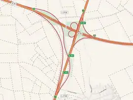 ![]() Pohled na dálniční křižovatku Gambacher Kreuz od severu. | |