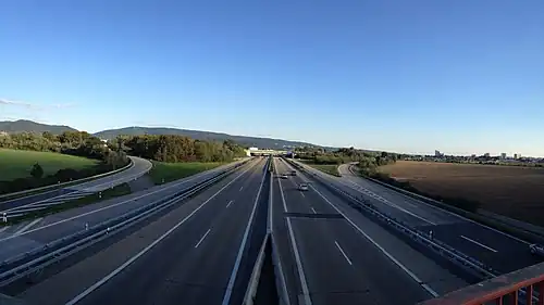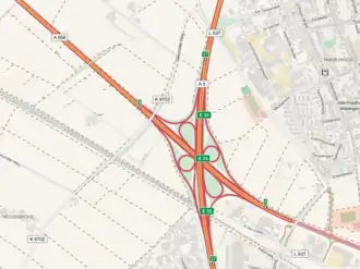 ![]() Letecký záběr na dálniční křižovatku Heidelberg ve směru na východ. | |