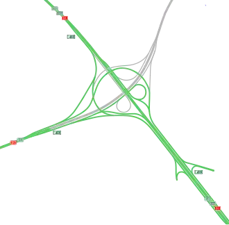 Dálniční křižovatka Modletice je zatím provedena jako nedokončený smíšený typ turbínové a čtyřlístkové tříramenné dálniční křižovatky.