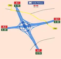 | Exit | Seznam silnic, které se zde kříží | Schéma |