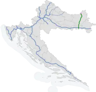Dálnice prochází Osijecko-baranjskou a Brodsko-posávskou župou. Bude začínat u budoucího hraničního přechodu na chorvatsko-maďarské hranici u města Beli Manastir a povede na jih, kolem města Osijek a přes řeku Drávu. Těsně u svého jižního konce, který tvoří hranice Bosny a Hercegoviny a řeka Sáva, se kříží s další důležitou chorvatskou dálnicí - dálnicí A3. Na bosenské straně se napojuje na další dálniční tah A1 ve směru Doboj – Zenica – Sarajevo – Ploče.