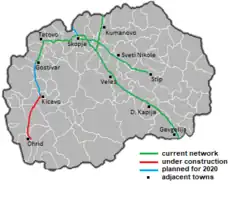 - ↑ ROAD NETWORK [online]. REPUBLIC OF NORTH MACEDONIA; PUBLIC ENTERPRISE FOR STATE ROADS [cit. 2021-12-23]. Dostupné online. (anglicky)
