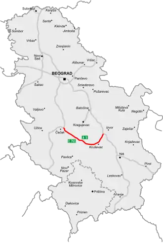 - ↑ Uredba o kategorizaciji državnih puteva („Sl. glasnik RS“, br. 105/2013 i 119/2013) Archivováno 12. 1. 2016 na Wayback Machine. (serbisch)