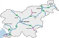 | A2 | Rakousko – Tunel Karavanky – Kranj – Lublaň – Novo Mesto – Brežice – Obrežje | 161,035 km | dokončena | OSM, WMF | |
