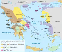 - Změnu nářečí a tradic v jižním Řecku před klasickým obdobím.