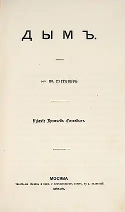 - ↑ TURGENĚV, Ivan Sergejevič. Dým: Novina. Praha: Stanislav Minařík, 1930. S. 13.