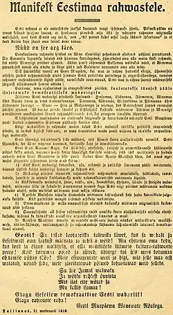 Po Říjnové revoluci a zhroucení dosavadní ruské moci ruská bolševická vláda rozhodla 26. listopadu 1917 o rozpuštění estonského zemského sněmu, hlavního symbolu nové autonomie. Protože nepřestal zasedat, rozehnala ho nakonec násilím. Na počátku roku 1918 nechala sice uspořádat nové volby, avšak poté, co v nich zvítězili zastánci estonské samostatnosti, výsledky bolševici anulovaly. 18. února 1918 zahájilo Německo novou ofenzívu proti Rusku. Vzápětí vznikl tříčlenný Záchranný výbor, který začal připravovat vyhlášení samostatnosti. Jakmile byla 24. února ruská vojska postupující německou armádou vytlačena z Tallinnu, vydal Záchranný výbor deklaraci o vzniku nezávislé Estonské republiky a ustavil prozatímní vládu, do jejíhož čela se postavil Konstantin Päts. Druhý den do Tallinnu vstoupila německá vojska. Němcům se myšlenka samostatného Estonska ovšem vůbec nelíbila. Päts byl zatčen a nezávislost zrušena. V březnu uzavřeli ruští bolševici s Němci brestlitevskou mírovou smlouvu. V ní se Rusové zřekli Pobaltí ve prospěch Německa. Estonská prozatímní vláda sice byla během května 1918 uznána Británií, Francií a Itálií, ale císařské Německo mělo jiné plány. Vlastní plány měla i místní baltoněmecká komunita. 12. dubna vyhlásila Baltský stát a následně jeho personální unii s Pruským královstvím. Německo zpočátku nevědělo, jak na tento krok reagovat, ale 12. září nakonec Baltský stát uznalo. Ovšem jako jediná z velmocí. Baltští Němci pak v obavách, že vysílené Německo nebude schopné garantovat existenci malého státu, se spojili s dalšími podobnými útvary v Pobaltí a vyhlásili Spojené baltské vévodství s hlavním městem Rigou. To však již byl velmi krátkodechý projekt, neboť 11. listopadu Německo kapitulovalo a císařství se zhroutilo. V Pobaltí vzniklo mocenské vakuum. Němečtí vojáci se z Pobaltí začali stahovat, Päts byl propuštěn z vězení a postavil se znovu do čela prozatímní vlády i do čela ministerstva války. Sovětské Rusko, ačkoli se Pobaltí předtím zřeklo, vycítilo příležitost a 13. listopadu zahájilo ofenzivu do Pobaltí, s cílem ho připojit k sovětskému státu.