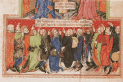Od 14. století význam těžby v Jihlavě klesal, přesto jihlavské horní právo zůstávalo základem právního pořádku i v jiných horních oblastech. Král Jan Lucemburský Jihlavu roku 1325 zval prvním horním městem Českého království.[24] Z příkazu moravského markraběte Karla z 15. srpna 1345 musela Jihlava přijmout do města Židy, ti přišli z Brna a usadili se v místech dnešní Židovské ulice, rychle tu vznikla škola i synagoga. Židovská komunita měla svou samosprávu s rychtářem a přispěla k velkému hospodářskému rozmachu v 70. a 80. letech 14. století.[25]
