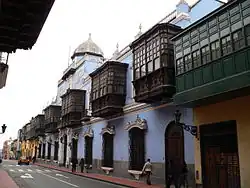 - ↑ WALKER, Charles. The upper classes and their upper stories: architecture and the aftermath of the Lima earthquake of 1746. Hispanic American Historical Review. 2003. únor, roč. 1, čís. 83, s. 53–55. [dále jen Walker 2003]. ISSN 0018-2168. doi:10.2307/2512570. (anglicky)