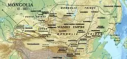 Za první nadkmenový státní útvar na mongolském území lze považovat nadkmenový svaz vytvořený na začátku 3. století př. n. l. Siungnui, kmenem, o jehož původu se vedou spory, ale většinou je označován za turkický.[1] Tento kmen původně sídlil ve stepní oblasti Ordos (na dnešních hranicích Mongolska a Číny), odkud jej roku 215 př. n. l. vytlačila na sever armáda čínské říše Čchin. O několik let později siungnuského vládce, šan-jüa Tchou-mana svrhl jeho syn Mo-tu (vládl 209–174 př. n. l.), který se stal zakladatelem říše, když si podrobil kmenový svaz východních Chuů ve východním Mongolsku a Mandžusku, jihosibiřské Ting-lingy a Jüe-č’y v Kan-su a Tarimu. Siungnuové tak získali převahu v široké oblasti mezi Sibiří a Čínou. Největší problémy jim způsobovala čínská říše Chan, vzájemné nájezdy nebyly výjimkou. Říše Chan nakonec získala v dlouhých válkách, především za císaře Wu-tiho (vládl 141–87 př. n. l.) nad Siungnuy převahu, a ti se od poloviny 1. století př. n. l. stali na Chanech závislými. V souvislosti s občanskou válkou v Číně na přelomu letopočtu (Wang Mang) se Siungnuům podařilo získat nezávislost, ale od poloviny 1. století se rozdělili na severní a jižní, přičemž jižní Siungnuové se usadili podél čínských hranic a stali se chanskými vazaly. Severní Siungnuové podlehli v bojích se svými sousedy a ustoupili do Džungarska, mongolské stepi poté ovládli Sien-pejové. V polovině 2. století Siungnuové odešli i z Džungarska. Část se usadila v Sedmiříčí, kde založili stát Jüe-pan, v 80. letech 5. století zničený Teleuty. Jiná skupina patrně odešla dále na západní Sibiř, kde smíšením s ugrickými kmeny dali vzniknout Hunům.