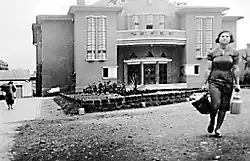 Místní nádraží bylo postaveno až po přičlenění města k SSSR a postaveno bylo ve stylu socialistického realismu.[18]